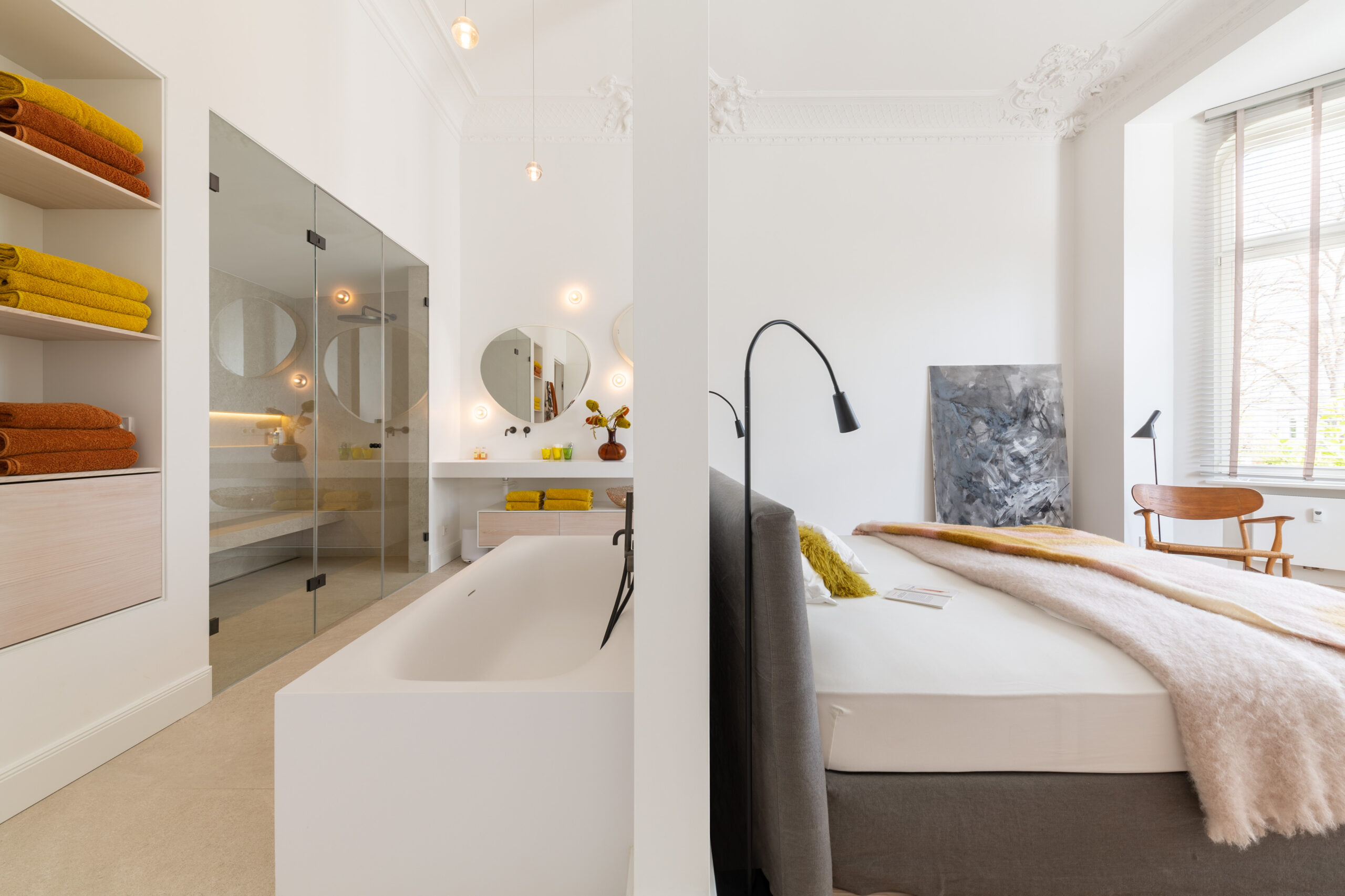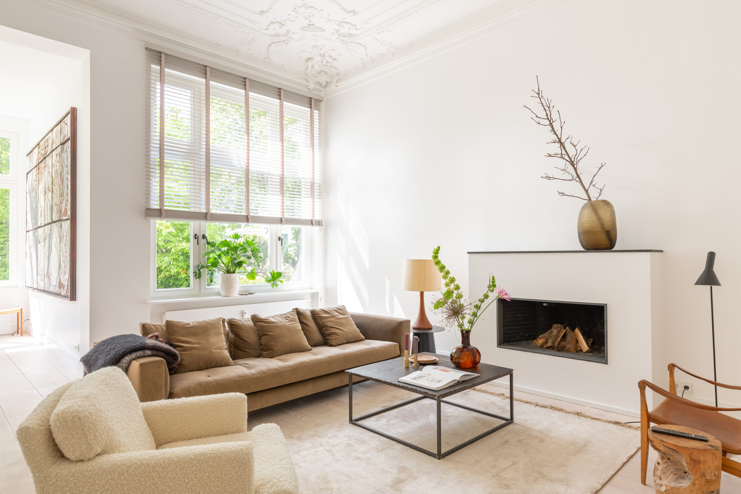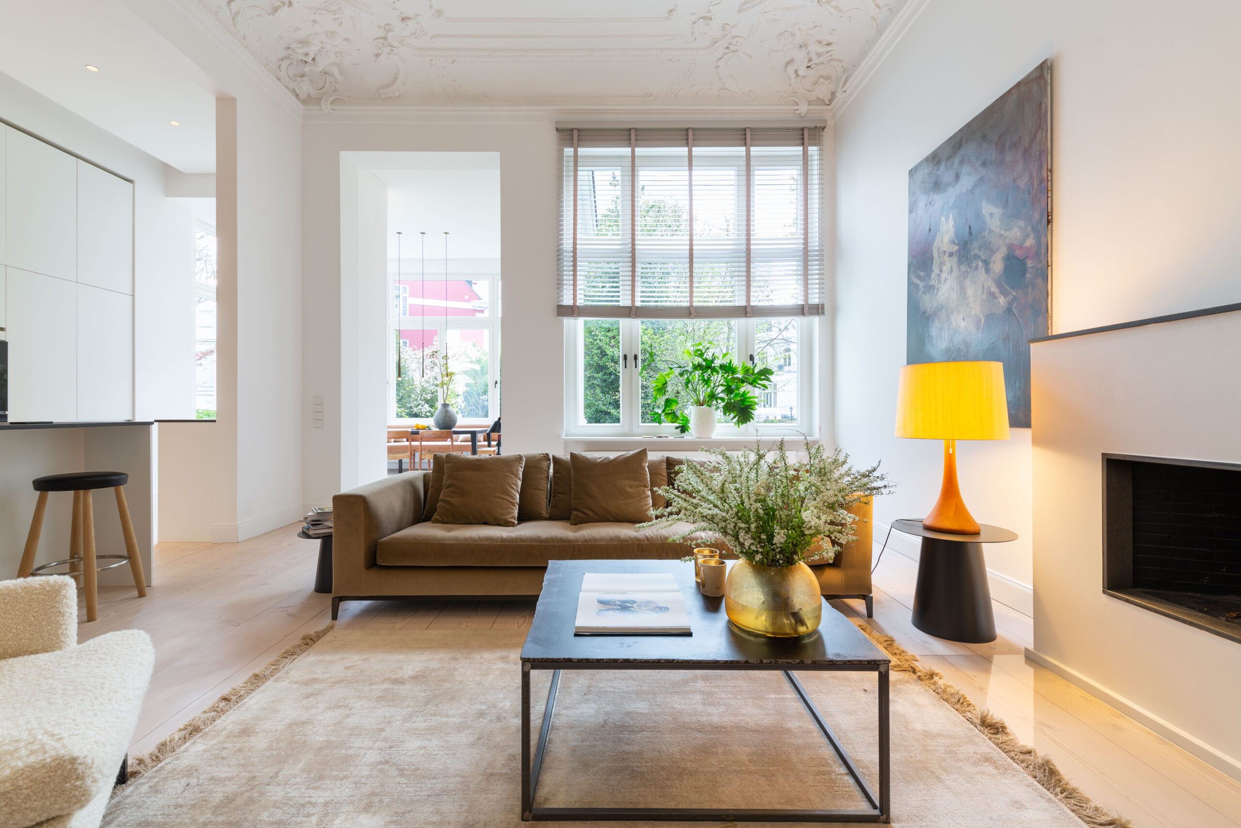 Diese Altbauwohnung wurde nach dem Designkonzept der Interior-Designerin Andrea Fritzsche eingerichtet. Fotos von 2020 & 2021 (ab Stuck-Detail-Foto).