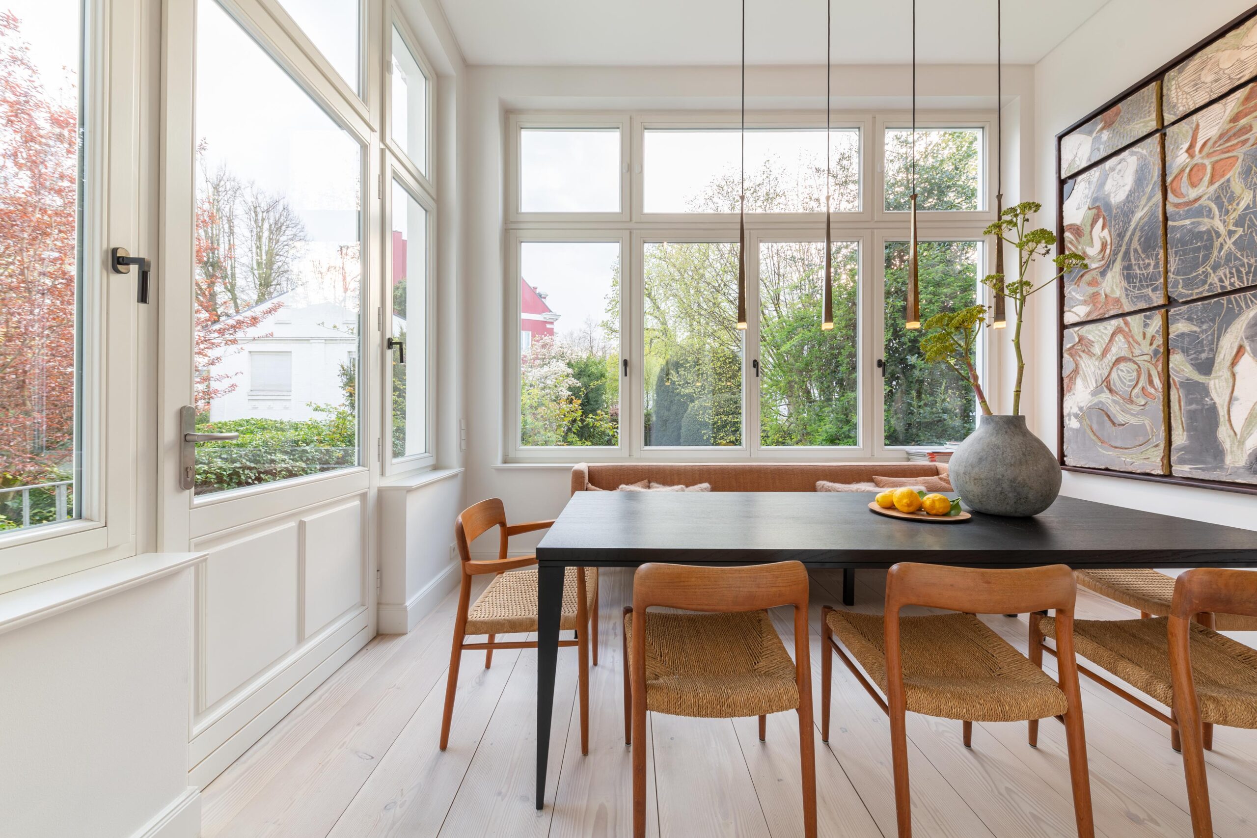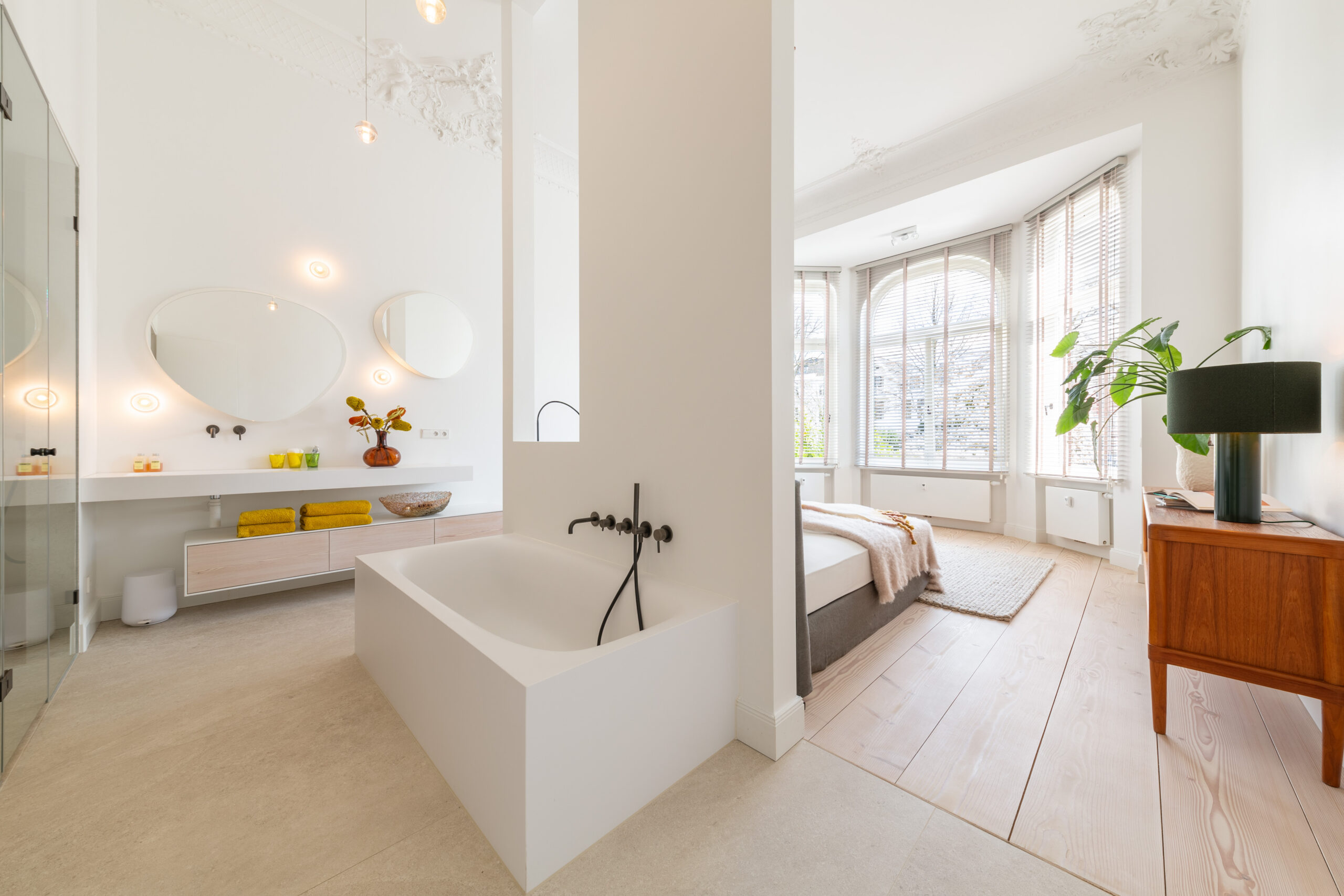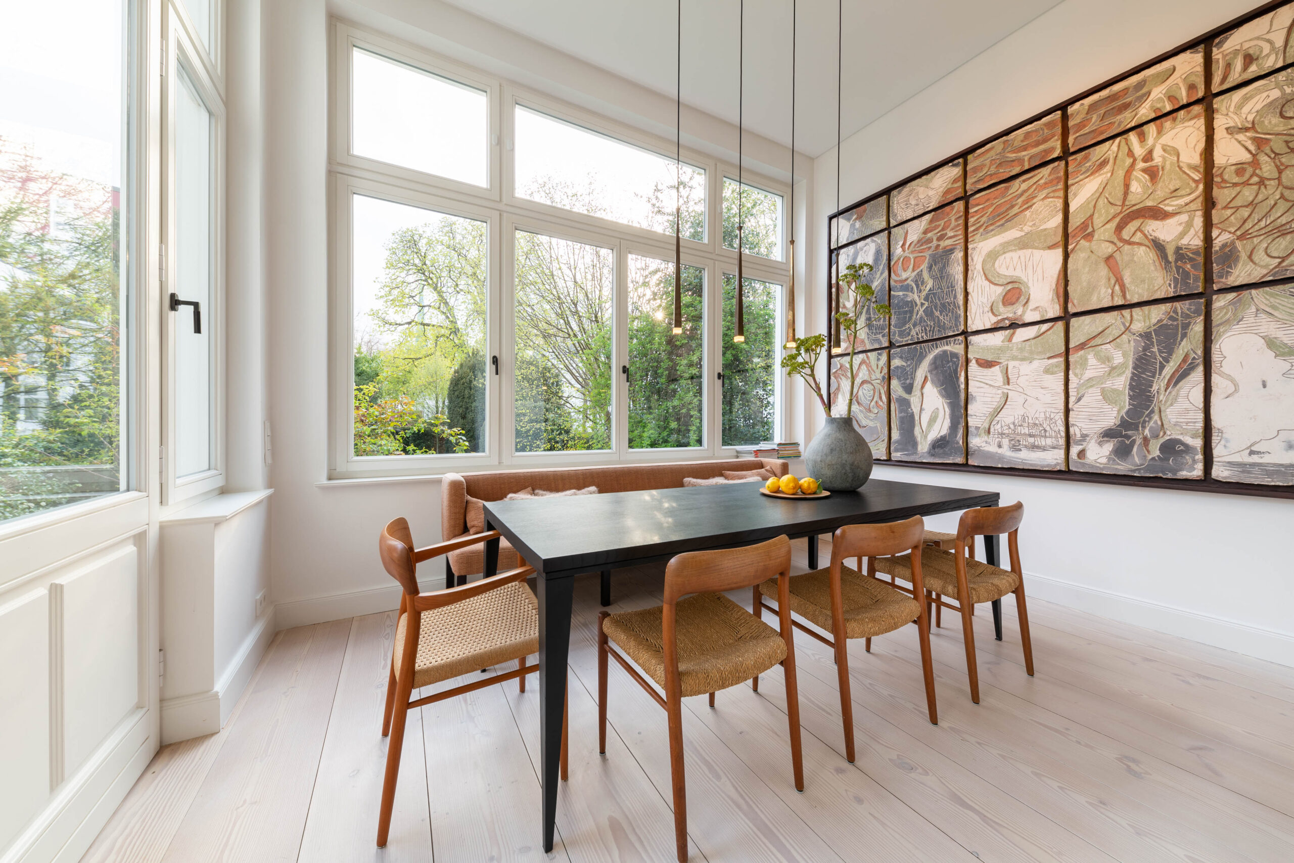Diese Altbauwohnung wurde nach dem Designkonzept der Interior-Designerin Andrea Fritzsche eingerichtet. Fotos von 2020 & 2021 (ab Stuck-Detail-Foto).