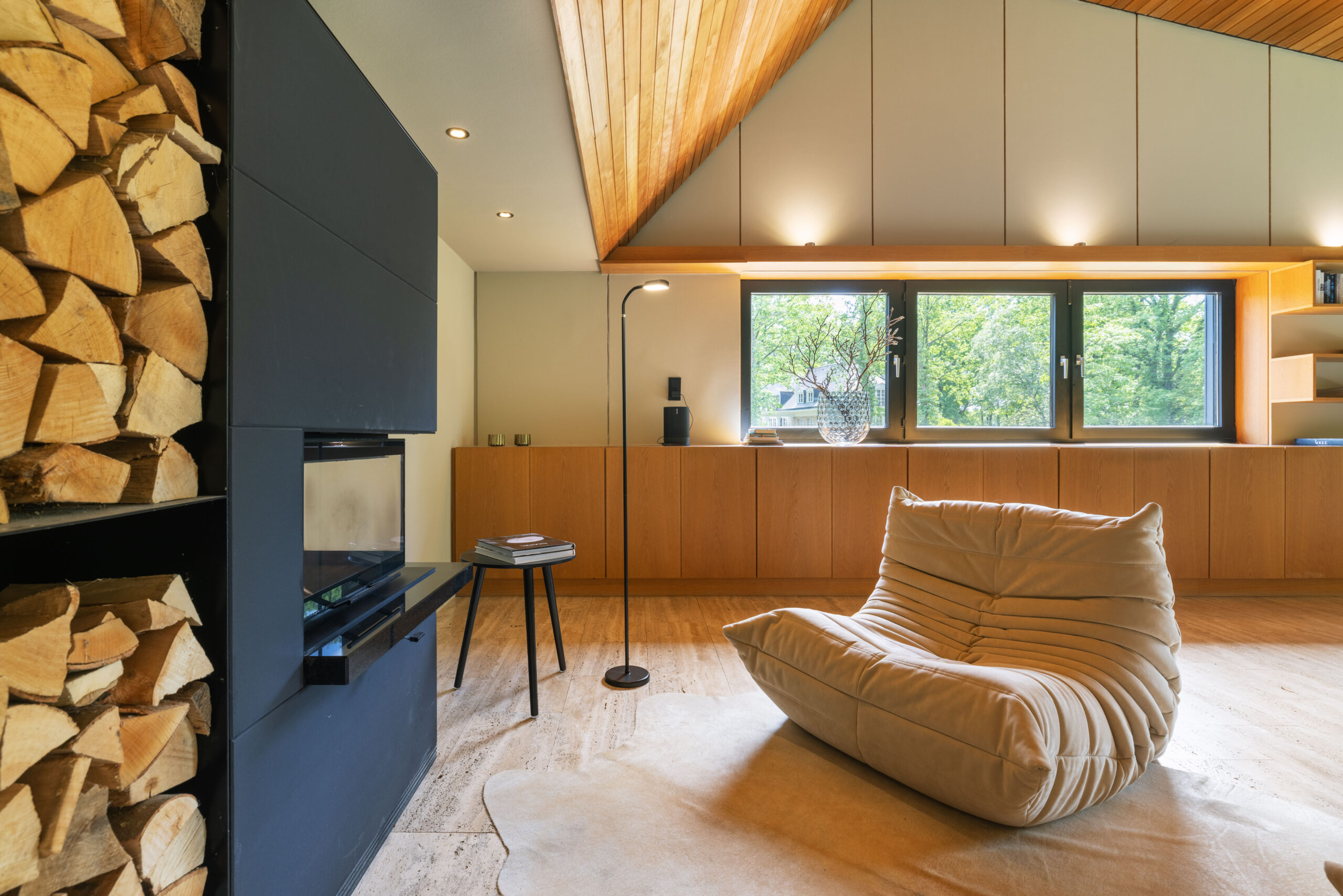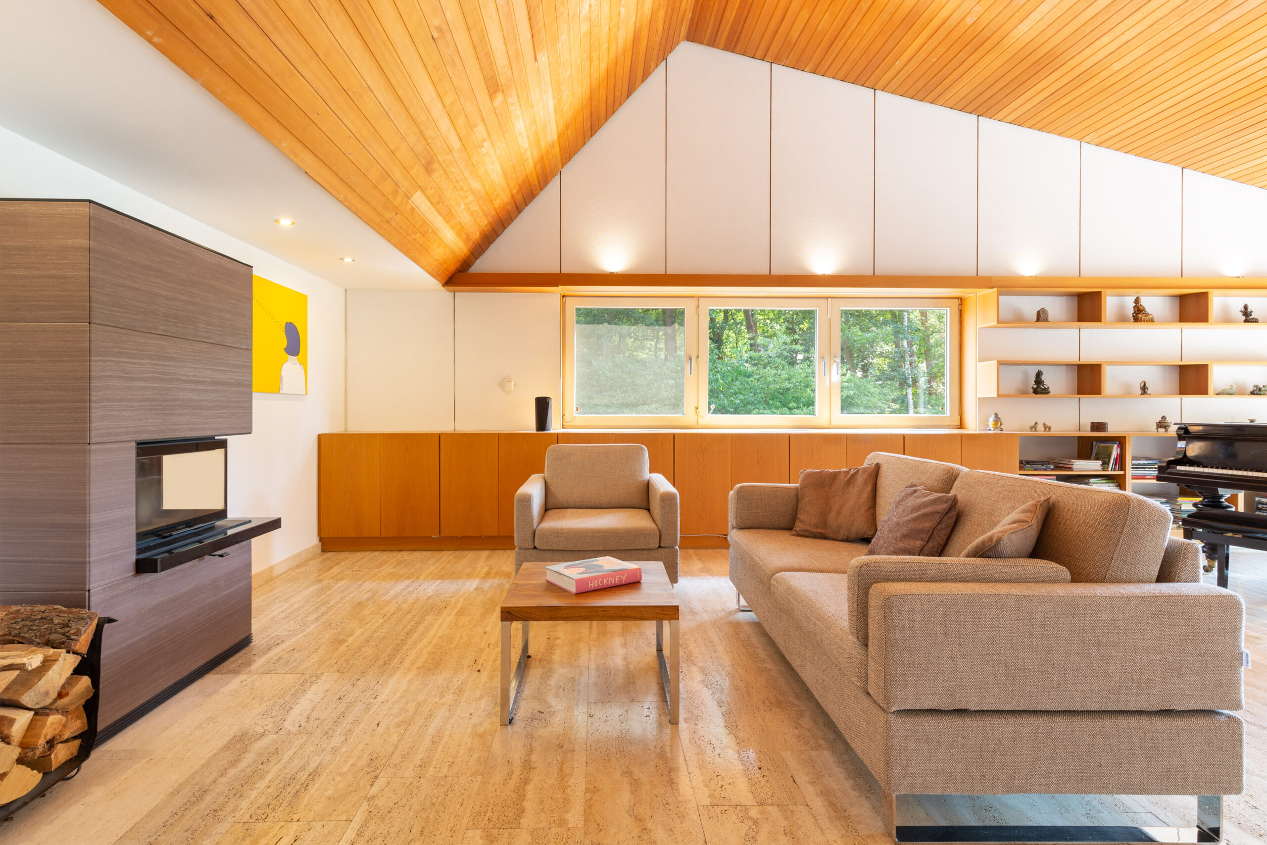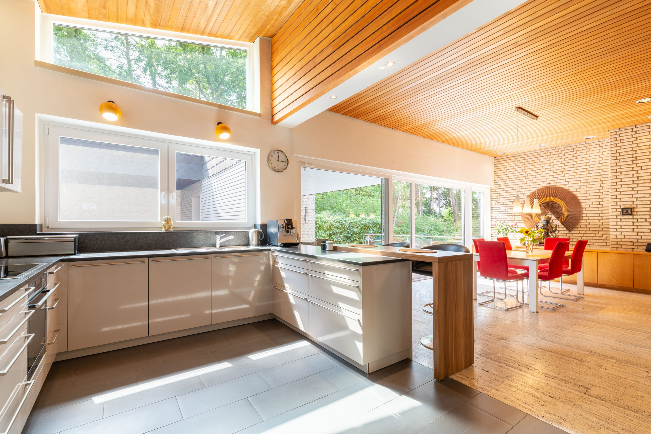 Ein Mid-century Haus im Split-Level-Style in der Nähe von Hamburg , einmal 2023 nach Renovierungsarbeiten und Umbauten fotografiert und einmal mit Aufnahmen von 2019.