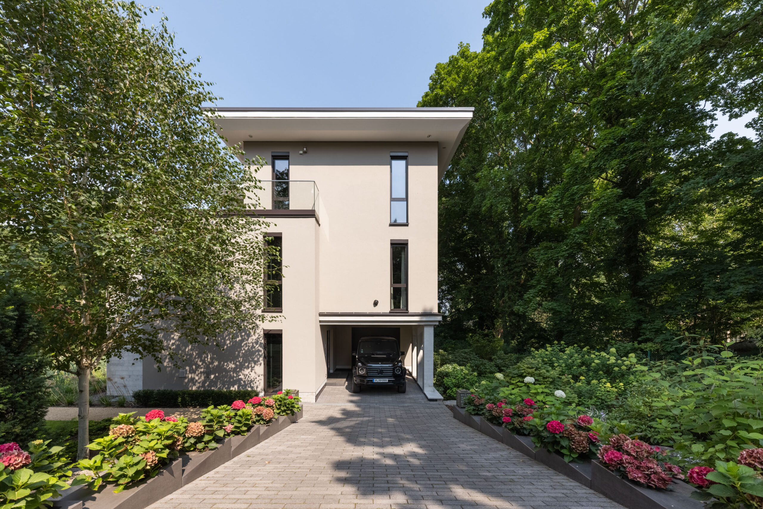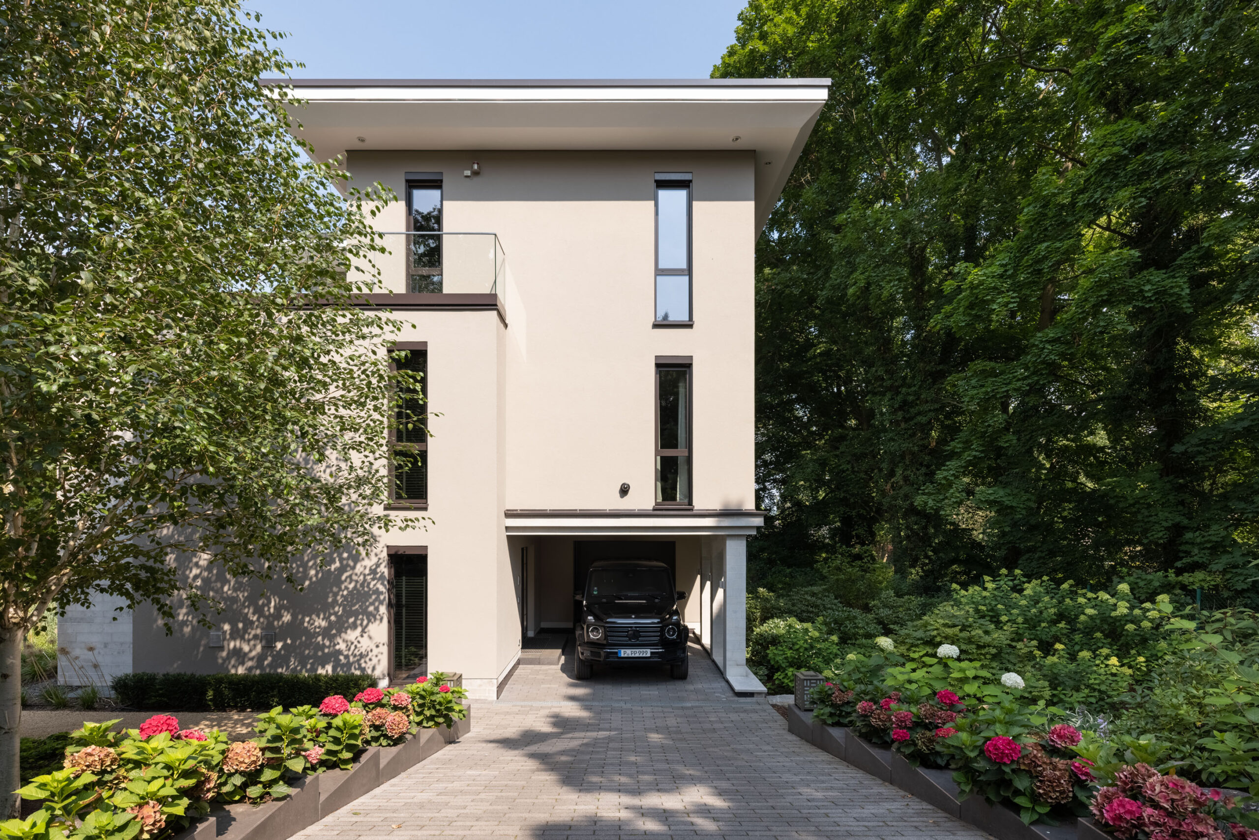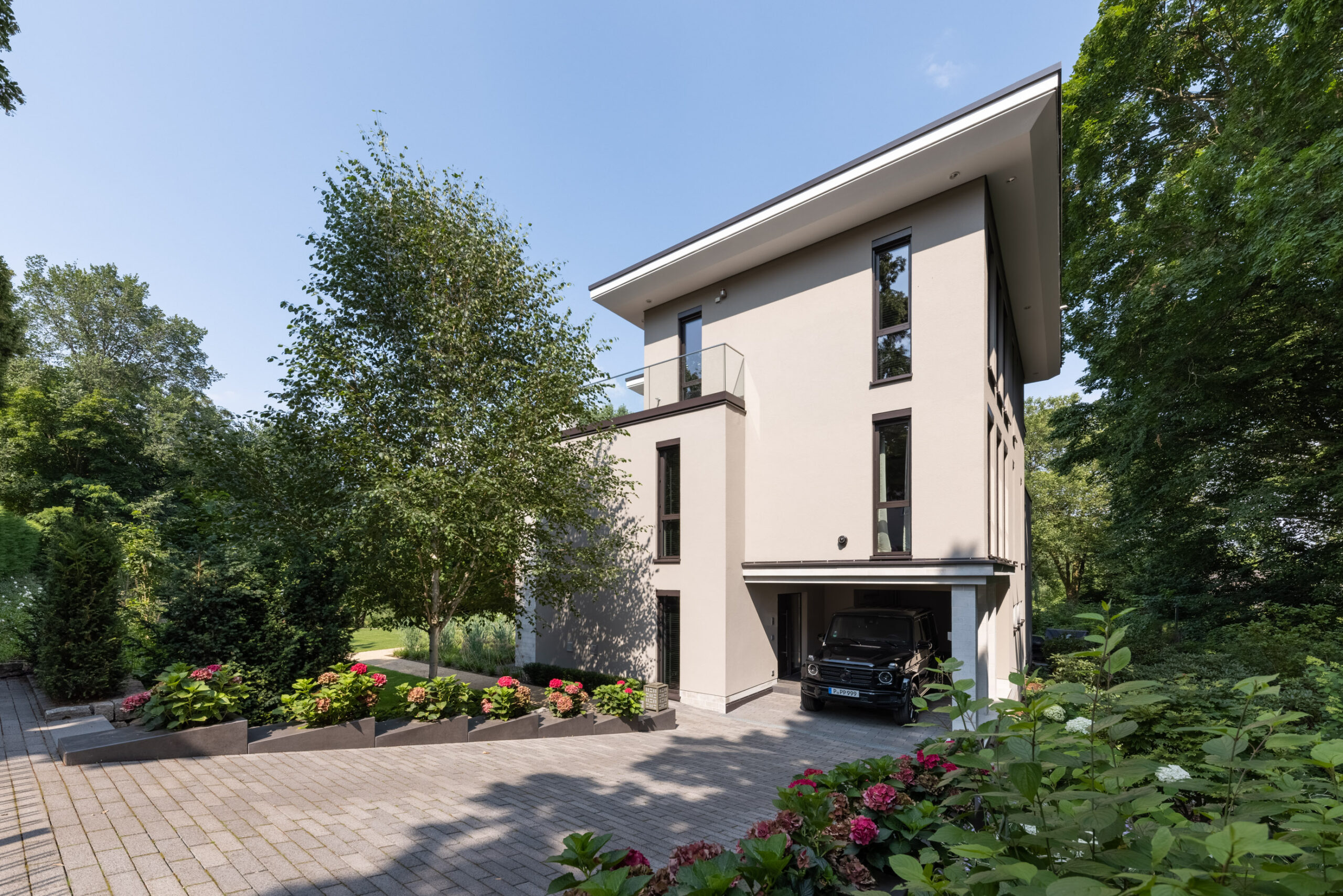 Diese Neubau-Villa in Seelage wurde 2021 außerhalb von Berlin fotografiert. Die Interieur-aufnahmen finden Sie hier