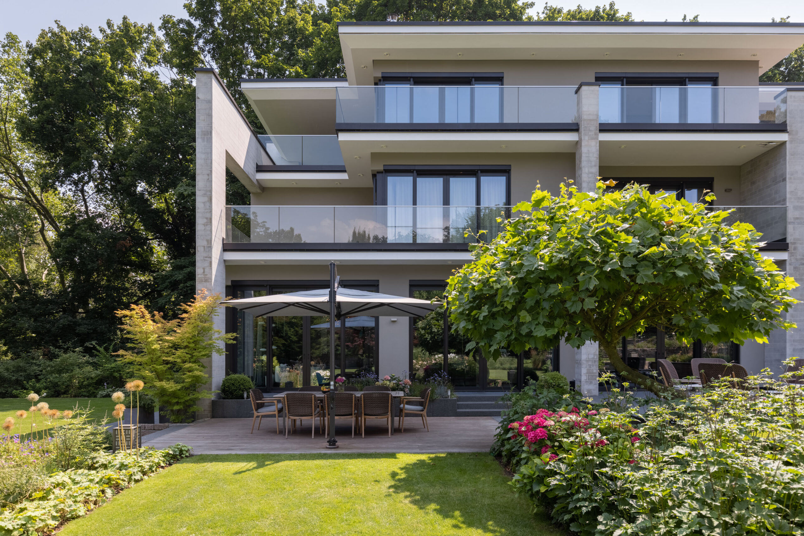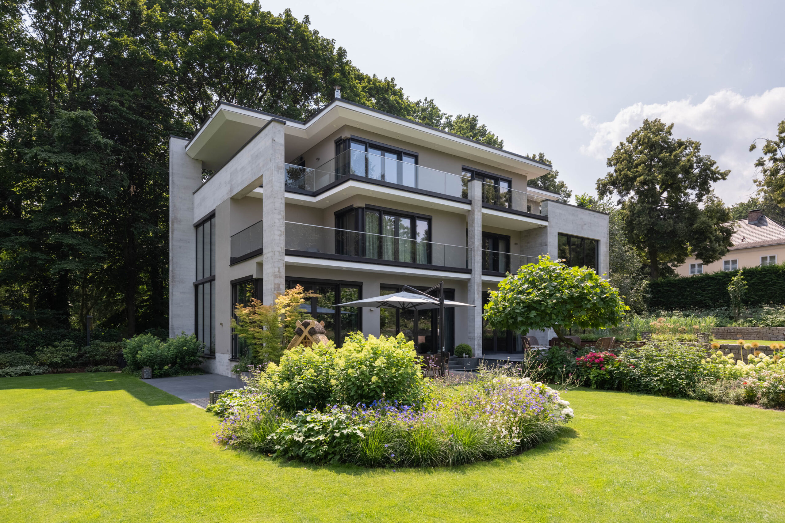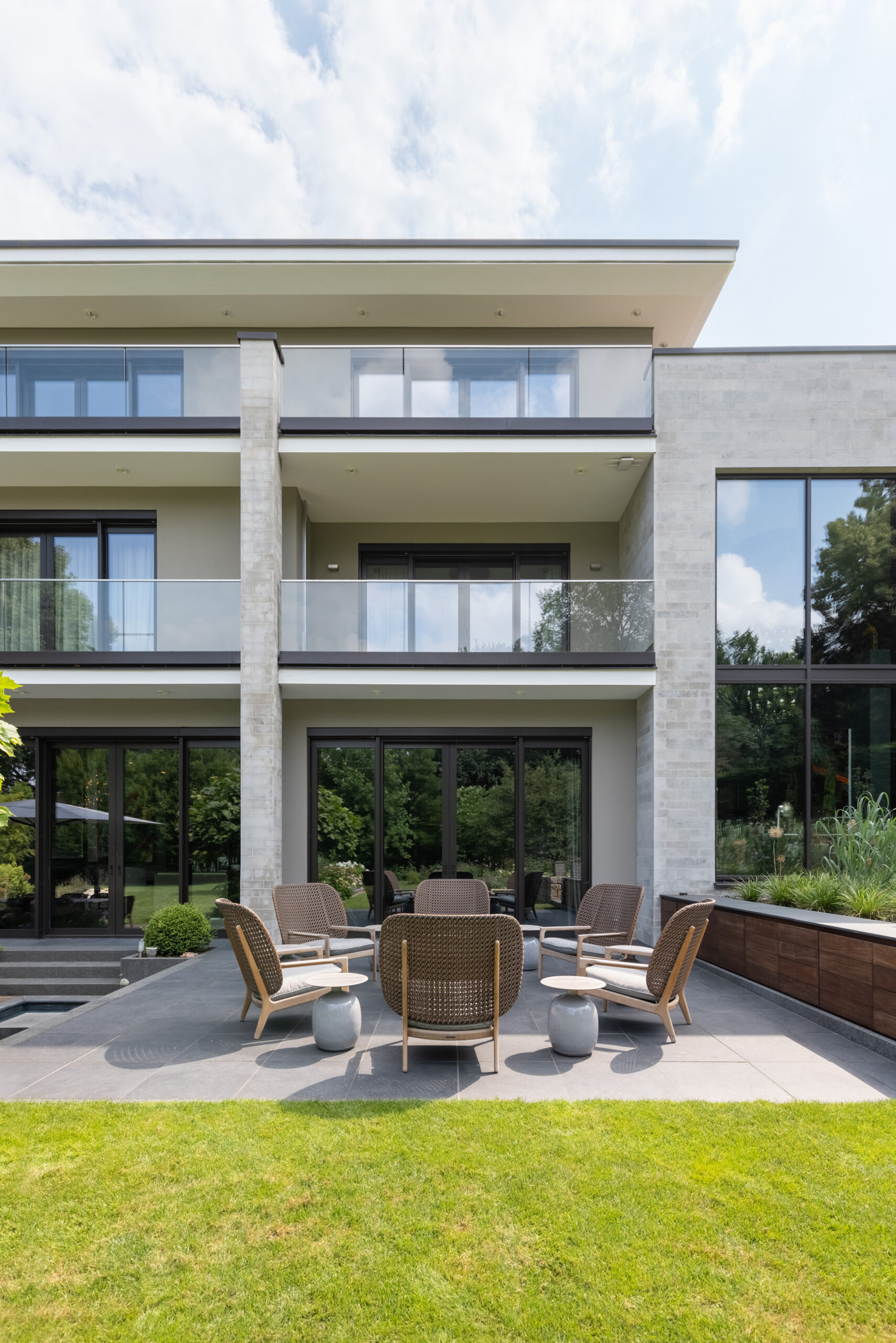 Diese Neubau-Villa in Seelage wurde 2021 außerhalb von Berlin fotografiert. Die Interieur-aufnahmen finden Sie hier